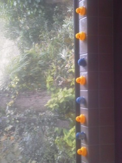 昨晩お風呂に入りますとビックリ?窓の前にひよこが並んでおりました、マァ可愛いこと、この間はペンギンちゃんをおいてありました、たまに遊びに来てくれるお嬢様がそおっとおいてくださるのです、優しい心の持ち主、愛猫のミンミにも遊ぶ物を作ってくれたり遊んでくれたりミンミは大変喜んでいるようです、愛犬愛豚のお墓の前にも可愛い飾りを、我が家の動物たちは幸福ですね♪ありがとうの一言です。今もひよこたちはお風呂から見える景色見ながらピョコピョコ遊んでいるかも?ニコニコ