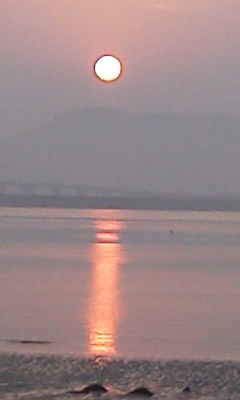 愛犬の散歩中防波堤を歩きながら写したものです、家から10分程で歩く距離、太陽が昇る瞬間の美しい事、力強さを感じる瞬間、すぐさまお経を唱えさせて頂きます、瀬戸内海は波が静かで海辺には鳥が泳ぎ又それが親鳥と小さな子供が沢山おり一連になり泳いでいる姿は可愛くなんとも言えない光景です、まるで絵本を見ているみたいです、自然には勝てません、誰が何て言おうが!ね♪ニコニコ