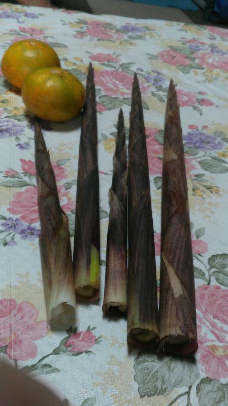 今年もにょきにょき顔を出してくれました、何が?ハイ竹の子で御座います、昨日は煮物にして時期外れの絶品な竹の子を食べました、勿論春にも顔を出してくれますよ、田舎は良いですよ、もお少しでミカンが出回ります、今日はスダチをもぎ取る予定だと主人が言ってました、草刈りも大変ですが仕方がないですね、良い面あり悪い面あり平均が取れているのです、世の中こんなもの、なんだ坂こんな坂で頑張りましょう‼笑笑ニコニコ