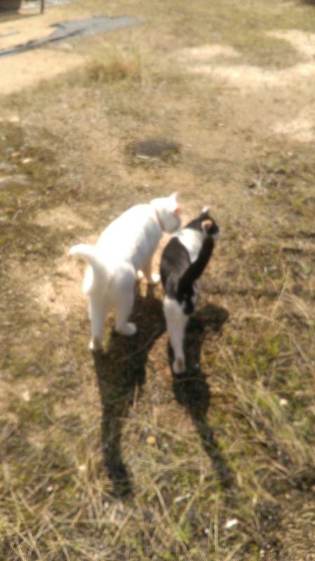 可愛い白ちゃんとノン君が引っ越しました、駐車場のプレハブです、広さは4畳位、ワンルーム、2匹は気に入って居る様子、仲良く遊び回っています、良く食べて良く飲んで良く寝てスクスクと育ってます。甘えん坊で私の顔を見ると、良い子良い子をおねだりで大変❤可愛いですよ本当に☺笑笑ニコニコ