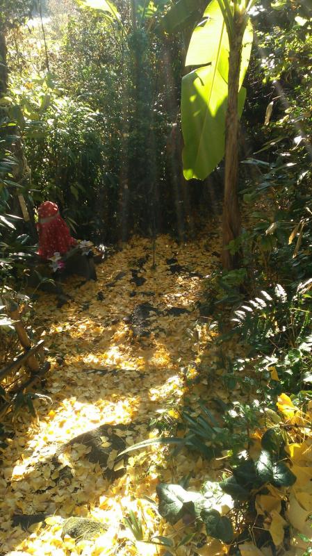 我が家の庭の大きな大きな銀杏の木があります、マァ見事でりりしく感じます、その下にお地蔵様が優しくたたずんでおられます、何とも言えない品の有るお顔とあどけない表情なのです、今外は北風ピュ~ピュ銀杏の葉が金貨のように落ちて綺麗すぎます、これが24金のかたまりだったらなぁ~だったら私は大金持ちなのに?考えるぐらいは罪にはなりませんよね綺麗すぎてまだ掃除をするつもりは有りません、四季折々自然一杯の田舎暮らしに感謝でございます、我が家のワン君達も今日ジャンプをしてスッキリ寒いのに元気にニコニコ一所懸命遊んでおります☺寒くないのかなぁ~猫ちゃんはおこたで寝てばかりです。どっちが良いのか?