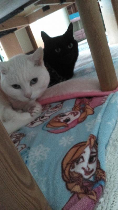白はモモ黒はミンミ、モモは16年ミンミは7年に成ります、相変わらずモモはきかんぼうで凶暴、ミンミは障害があり歩けずに足をすりながら移動、冬はコタツで丸くなっております、体が乾ききるのではと心配するほどです、2匹は遊ぶわけでもなくて個々に自由に暮らしておりますがコタツに入りますとミンミは側で嬉しそうなんです、私はそれを見てホッコリ幸福です、2匹は健康で助かります、健康で長生きを願います。笑笑