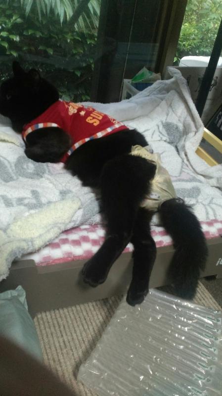 我が家に来てから7年余り、可愛く育ちました、足を引きずりながらあちこち移動致します、オシッコはオムツの中に赤ちゃんと一緒です、日に3回ほどオムツ替えの作業をしております、本人は分かっていて、ミンちゃんオムツだよ、声をかけますと定位置に行きコロンとどうぞと言わんばかりの姿勢に寝てくれます、嫌な時は今違う嫌だの態度を、可愛いですよ、最近ある人からオムツカバーを作って頂き漏れる事なく大変助かっております、尿漏れは大変何です、猫のオシッコは大変臭いがきついのです、洗濯が大変でしたがオムツカバーのお陰で大変助かっております、有りがたく感謝です、必要な方がおられましたら連絡下さい、模様も可愛くミンちゃんも満足気味で笑笑ニコニコの毎日です。