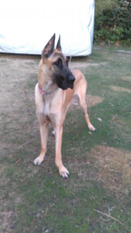 一ヶ月程前に我が家に可愛い産まれて十ヶ月に成りますグレイトデンの女の子が来ました、まだ幼くて何でも興味がありいたずらの真っ最中、前からいるグレイトデンのジイナは遊べ遊べと付きまとわれて大変迷惑、もう一年間位はこんなかとさきが思いやられます、しかし可愛らしく思い怒る事が出来ません、人間の子供と一緒です、名前はレベッカちゃん言います、何だかどこかで聞いた事のある名前ですが?毎日楽しそうに庭を走り回っております、良く遊び良く食べて良く悪さをして毎日を過ごしております。私達はそれを見て笑笑ニコニコ何です。