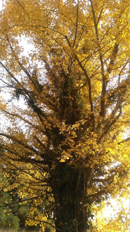大木の銀杏の葉っぱが