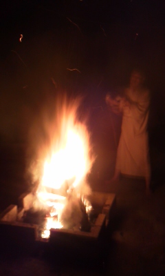 今日は不動明王様の日、早朝から護摩焚を行いました、煙と炎が私達に巻き付くようでした、お滝が初めてのひとがおられましたが震えることもなし大したもの、後はスッキリした様子でした、天と私達が一体となり祈りお願いを致しました、その後は玉子かけご飯を食べながら雑談、そしてニコニコで解散、よき一日の始まり、バンザ〜イニコニコ