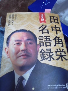 生まれ故郷の生まれ田中角栄氏私は大ファン、この間も本を求め読見ました、まぁなんと私の考え方が一緒、だいぶ変人、頑固、言いたいことはバンバン、主人に本の項目にチェックをしてもらい私の生き方と比べてもらいました、びっくりするほど似ておりました、嬉しくなり満足感で一杯、又又元気が出ました、バカと言われても気違いと思われようと、私は私、苦は辛抱、いずれ苦が笑いになると思うからです、そして笑いにして見せる自信があるからです。ニコニコ