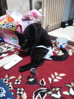 もう生まれて半年は立っていると思います、我が家に来てから4ヶ月位、初めは怖いのか側に寄せ付けなかったミンミちゃん、オシッコは日に三回私がさせます、自分では無理なんです、歩くのもまだ駄目なんですが上手に足を引きずって移動します、速い動作です、普段はオムツですがオシッコの時間になるとわかるのかしっこパットに横に なります、こんなに小さなミンミちゃんも一生懸命生きてます、愚痴も言えない自分をどお思っているのか?もう一匹の後を付きまとって嬉しそうです、ミンミちゃんの姿を見ると可哀想でもありますがそのぶん大切に育てたくおもいます。ニコニコ