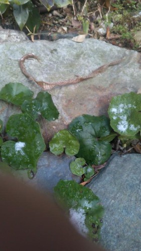 寒いのにヘビが脱皮を、