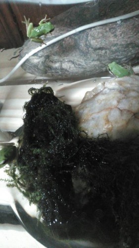 息子がモモとミンミに青ガエルを連れて来てくれました、外には出れない2匹の猫さんは嬉しいのか側から離れません、カ…
