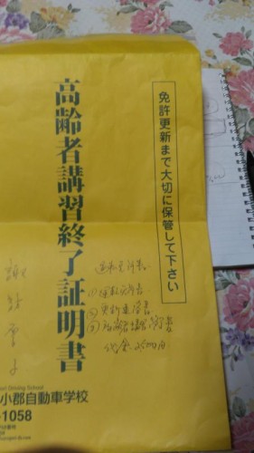 免許更新に行きました、中々今までに無い親切な応対、何でかナァ?分かりました?私が高齢者講習修了証明書の黄色い紙…