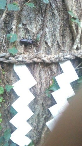 お地蔵様と共にお力を下さる銀杏の樹にクワガタが何匹も、初めて見ました、大きいのから小ぶりのものから、このクワガ…