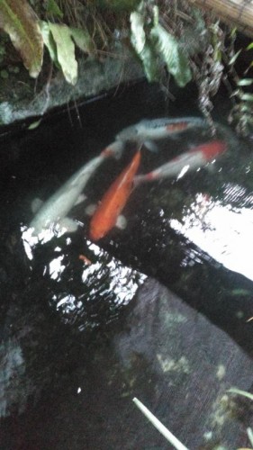 池の鯉もバタバタしはじめました。