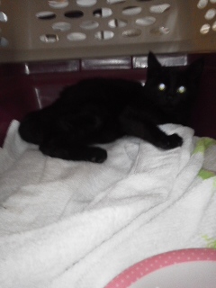 昨日野良猫ちゃんが退院しました、背中に傷があり足は何とか歩けるかも?オシッコがうまく出来ないみたい?名前はミン…
