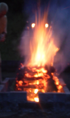 今朝は不動明王様の日炎の中でそれぞれの思いでお祈りします、又今日は上棟式があり妙霊の出番、前途晴れ晴れの想いで…
